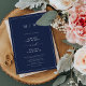 Marinblå Elegant Kant & Monogram Bröllopsinbjudan