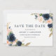 Marinblå Elegant Modern Blommig Bröllop Spara Datumet