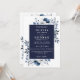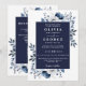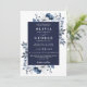 Denna eleganta marinblå blommiga bröllopsinbjudan kan anpassas med din information i modern typografi med din bröllopswebbplats QR-kod på baksidan. Designad av Thisisnotme©