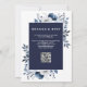 Marinblå Elegant Rustik Blommig QR-kod Bröllop Inbjudningar