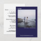 Dessa enkla RSVP-kort har en minimalistisk design med ditt foto på en marinblå bakgrund och titeln RSVP, tillsammans med dina namn. Baksidan är ett formulär som dina gäster fyller i och returnerar för att ange om de kan komma, hur många gäster de medför och deras måltidsval. Det finns också utrymme för en webbadress så att dina gäster kan svara online om de föredrar det.