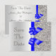 Personliga bröllopsinbjudan "Save The Date"-kort. Eleganta anpassade silver- och marinblå dubbelsidiga platta "save the date"-kort med vacker glittrig tryckt glittermönster, söta blanka tryckta marinblå vektorbildsbågar och -band och snygga, stilrena tryckta diamantglitter och mörkgrå silvertext på silverfärgad gradientbakgrund. Dessa klassiska, glamorösa och moderna silverfärgade formella anteckningskort är dekorerade på båda sidor och tryckta på ditt val av inbjudanpapper. Vackra, trendiga, moderna dubbelsidiga kort med tjejigt glitter och glamour. Observera: Alla inbjudningar på Zazzay har platt tryckta bilder. Jag har matchande produkter för bröllop i min butik. Text, teckensnitt och färg på teckensnitt är alla anpassningsbara för att passa dina behov. Om du behöver hjälp med att anpassa din