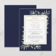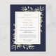 En elegant botanisk personlig akvarell grönska livets firande minnesinbjudan vykort med botanisk akvarell grönska bladverk på en marinblå bakgrund. Designad av Thisisnotme©