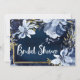 Marinblå & Guld Elegant Modernt Akvarell Blommigt Inbjudningar