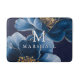 Marinblå Guld Modern Blommig Monogram Familjenamn Badrumsmatta