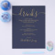 Marinblå Guld Modernt Skript Bröllopsdryckesmeny Reklamblad