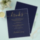 Dessa eleganta marinblå och guld minimalistiska dryckesmenyer i script-stil är perfekta för alla tillställningar. Designad av Thisisnotme