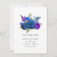 Elegant vintage marinblå och kunglig blå ros bröllopsinbjudan med accenter av lila och guld i ett barock påfågel tema kan anpassas till dina evenemang. Perfekt för alla givna tema eller trädgårdsbröllop.