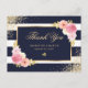 Marinblå Guld Rosenskymning Blommig Bröllop Tack Vykort