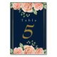 Marinblå guldrosa blommig bröllopsbord nummer bordsnummer