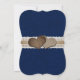 Marinblå bröllopsinbjudan jute hjärtan på en jute och spets bakgrund.