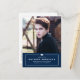 Meddela din examen till familj och vänner med detta anpassningsbara examensmeddelande i form av ett vykort. Den har en enkel typografi på en marinblå bakgrund. Anpassa detta marinblå examensmeddelande genom att lägga till ett foto, namn, skola och andra detaljer. Detta klassiska examensmeddelande i form av ett vykort finns tillgängligt i andra kartongtyper.