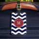 Marinblå & Lugguage för vitsparreMonogram märkre Bagagebricka