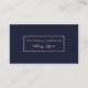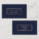 En modern makeupkonstnär, cosmetologist, skönhetsalongvisitkort med en rosa guld- ram för modern faux på fullständigt en anpassadeelegant och enkel marinblå bakgrund