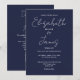 Denna marinblå minimalistiska eleganta skrivstil bröllopsinbjudan kan anpassas med din information i chic typografi med detaljer om din bröllopswebbplats och din QR-kod på baksidan. Designad av Thisisnotme
