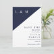Marinblå Modern Minimalist Monogram Bröllopsfoto Spara Datumet