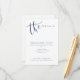 Moderna enkla bröllopsdetaljer bifogade kort med handskrivna manuskript i marinblått och vitt, elegant och stilfullt.