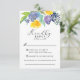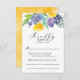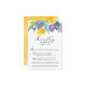 Ljus akvarell färgglada blommor i kanariegul, plommonfärg och marinblå nyanser pryder toppen av detta glada men ändå eleganta bröllopssvarskort. Klassiska serif-teckensnitt moderniseras med accenter av lekfull skripttypografi och inslag av gult genom hela designen. En djup gul akvarelldesign pryder baksidan av detta kort.