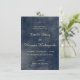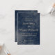 Denna sofistikerade bröllopsinbjudan har en elegant design med en lyxig blå akvarellbakgrund, kompletterad med stilrena guldfärgade accenter. De formella och klassiska teckensnitten som används förstärker inbjudans övergripande elegans och gör den perfekt för ett tidlöst och romantiskt bröllop. Informationen presenteras tydligt och en svarstelefonnummer finns för gästernas bekvämlighet. Denna inbjudan fångar vackert essensen av en modern men samtidigt vintageinspirerad bröllopsfest.