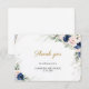 Marinblå och rosafärgade blommor guldgrönt bröllop tackkort, kontakta mig för matchande artiklar eller för anpassning, rosor i rosé ©