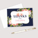 Stiliga tack-kort inkluderar "Tack från ____" anpassad text i djupblå / midnattsblå och rosafärgade / korallrosa nyanser, infattad i en guldbordad ram och vackra akvarell blomsterarrangemang med grön lövverk och pastell rosa, rosafärgade, och persikorosa vår-dahlia och rosor. Innehåller utrymme på kortets insida för ett handskrivet tack-meddelande, eller så kan du anpassa för att skriva ut korten med ett tack-meddelande - klicka bara för att anpassa ytterligare och lägga till text.