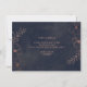 Marinblå och roséguld folieblommig kant vigseldesign med handritade blommor, blad och vattenfärg bakgrund. En chic och modern look för en höst eller vinterbröllop, med djärva färger: Marinblått och roséguld falska foliedetaljer. Handritade blomsterdetaljer, modernt trendig scriptfont - Personlig vigsel Kommer du att bli min blomsterflicka förfrågan kort!