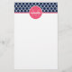 Marinblå och shock rosaQuatrefoil Monogram Brevpapper