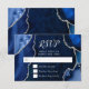 Skapa ett djärvt och elegant första intryck med detta svarskort i naviblå och silverfärgad agat-marmor, med rika juveltoner, organiska stentexturer och glänsande silverdetaljer som är perfekta för höst- och vintersammankomster. De djupa, mörkblå nyanserna i kombination med metalliskt silverdetaljer skapar en dramatisk men ändå raffinerad look som är idealisk för ett bröllopssvar, födelsedagssvar eller Sweet Sixteen-svar med en formell, modern eller glamourös estetik. Inspirerad av naturliga agat- och geodmönster, koordinerar denna lyxiga design vackert med exklusiva säsongsbetonade evenemang och är helt anpassningsbar för att matcha dina detaljer, vilket ger tidlös sofistikation till både höst
