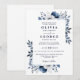 Marinblå och vit elegant modern blomsterbröllop inbjudningar
