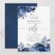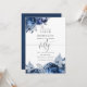 Marinblå och vita blommor 50-årsdag inbjudan med silverfolieaccent, designad för att snabbt och enkelt anpassas till ditt evenemang.