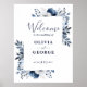 Marinblå och vita blommiga vigsel välkomstskylt poster