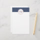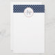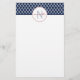 Marin- och vitquatrefoilmönster med den röda monogramen.
