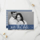 Marinblå ränder Spara datum Foto Tillkännagivande Datumet