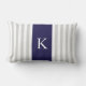 Eleganta och moderna nautiska dekorativ kudde för stillumbarformat eller dämpar med en enkel, modern och snyggten görad randig mönsterdesign som är beställnings- monogrammed med ditt initialt i en preppy stilsort. Grå färg- och vitlodrätrandar kontrasterade med en marinblå färgkvarterbakgrund. Personifiera din gåva, genom att tillfoga ditt eget, märka med sina initialer. Välj dina egna stilsort och färger för att göra det ditt eget. Denna ska moderiktiga nautiska design gör en underbar gåva för dig eller någon som är speciella och, ska förhöjer några som är hem-, sätter på land huset, helgdaghemmet, barnkammare, pojkar, flickor, bebiset, tonåringrum, kontoret, fartyget eller dormen.