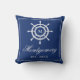 Nautisk dekorativ kudde i djupblå med din monograminsida en vitroder. Personifiera med ditt efternamn, och året var din familj etablerad. Älskvärd dekorativ kudde för ditt hem. Perfekt för strandhuset!