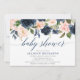 Marinblå & rodna rosa blom- elegant baby shower inbjudningar