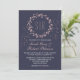 Marinblå rosa blomsterkrans bröllopsinbjudan inbjudningar