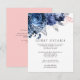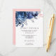 Marinblå och rosa blommor bröllopsgäst informationskort med accenter av silver.