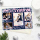 Marinblå bakgrund med rosa accenter och vita fantasifulla snöflingor gör ett unikt julkort denna säsong. Fyll detta kort med 5 bilder för att skicka till familj och vänner denna jul. Texten är vit med rosa accenter för att anpassa med din familjs namn, förnamn och år.