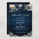 Akvarell marinblå rosafärgad rustik trädgård elegant blomsterdesign med stränglyktor save the date-kortmall med salvia grön botanisk växtlighet och eucalyptusblad på trähyllning. Denna vackra lätt anpassningsbara design kan matcha enkelt med dina bröllopsfärger, stilar och tema och är ett perfekt val för höst, midsommar eller vinter rustika landsbröllop. Du kan hitta fler matchande designs i min butik eller kontakta mig om du behöver hjälp med designanpassning.