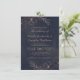 Marinblå & Roséguld Folie Blommig Rustik Bröllop Inbjudningar