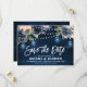 Akvarellblå naviblå rosa rustic landsbyklass chic blommig design med strängljus och murskål "save the date" inbjudningskortmall med salvia grön botanisk lövverk och eucalyptusblad på trähyllning. Denna vackra och lätta att anpassa design passar enkelt med dina brölloppsfärger, stilar och tema och är ett perfekt val för höst-, midsommar- eller vinterrustika landsbybröllop. Du hittar fler matchande mönster i min butik eller kontakta mig om du behöver hjälp med designanpassning.