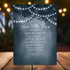 Meddela din speciella dag med vårt marinblå trädsträngljus save the date-kort. Denna förtrollande design visar ett rustikt träd prytt med strängljus, som skapar en varm och inbjudande atmosfär. Perfekt för utomhus- och skogstematiska bröllop, detta unika save the date kommer att fascinera dina gäster och sätta tonen för ditt bröllop.