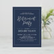 Fira din speciella dag med denna stilrena moderna inbjudanmall för pensionärsfest. Denna design har chic kalligrafi och en enkel ram med en marinblå bakgrund.