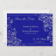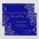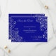 En fantastisk design med silvergrå utsmyckningar och små blommor. Mot en tilltalande blå bakgrund är detta kort perfekt för ett bröllop med blå färgtema. Den medvetna diagonala texten följer designens linjer. Om du har bestämt dig för blått och silver som huvudsakliga bröllopsfärger är detta ett perfekt val.