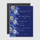 Marinblå silverblommor script lyxigt bröllop magnetisk inbjudningskort