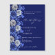 En marinblå bakgrund, dekorerad med blå och silverfärgade blommor. Personifiera och lägg till era namn och detaljer.