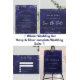 En marinblå bakgrund, dekorerad med falskt silverglitterstoft. Den blå färgen är ojämn. Personifiera och lägg till era namn och detaljer.