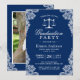 Marinblå spets jurist studentexamen fest foto inbjudan. För ytterligare anpassning, använd vårt designverktyg för att ändra denna mall.
