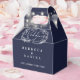 En elegant marinblå bröllopspresentlåda med strängljus och handritad blomsterlövverk. Du kan anpassa med ditt eget tackmeddelande på baksidan. Ett perfekt sätt att tacka dina gäster! Designad av Thisisnotme